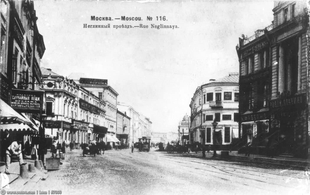 По обеим сторонам Неглинной во второй половине XIX - начале ХХ столетий был выстроен целый ряд представительных зданий с торговыми помещениями на первых этажах.